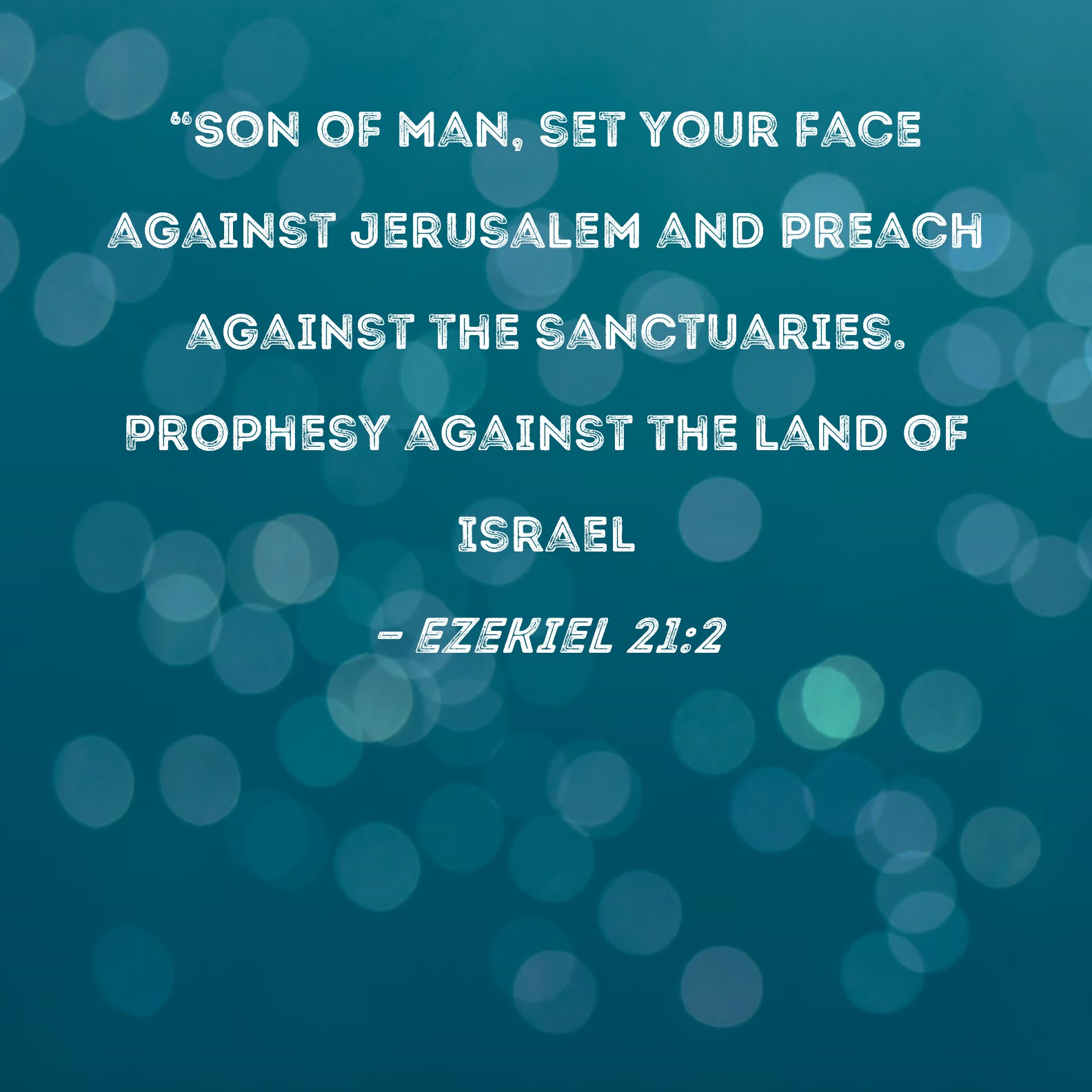 Ezekiel 21:2 "Son of man, set your face against Jerusalem and preach against the sanctuaries. Prophesy against the land of Israel
