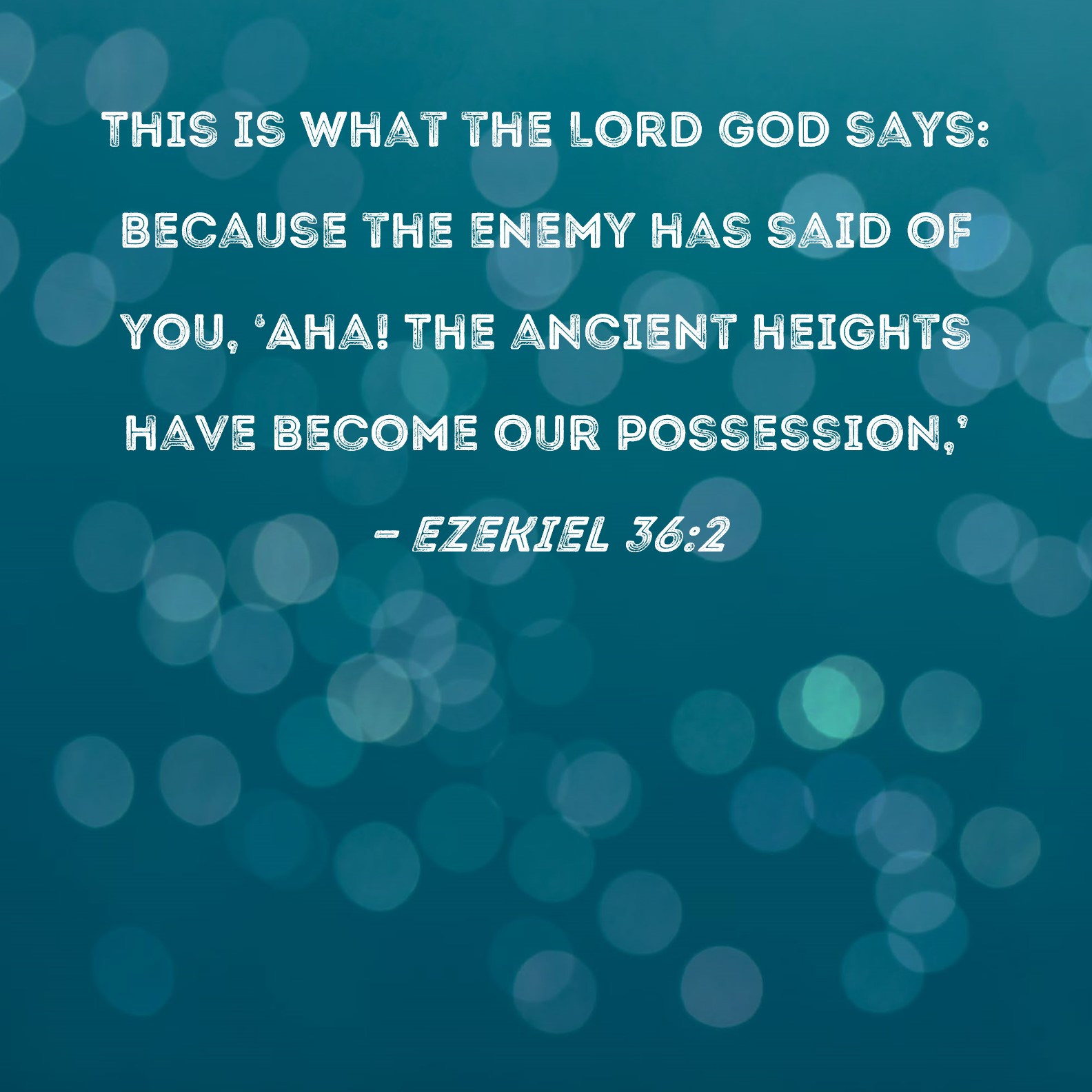 Ezekiel 36:2 This is what the Lord GOD says: Because the enemy has said of you, 'Aha! The ancient heights have become our possession,'