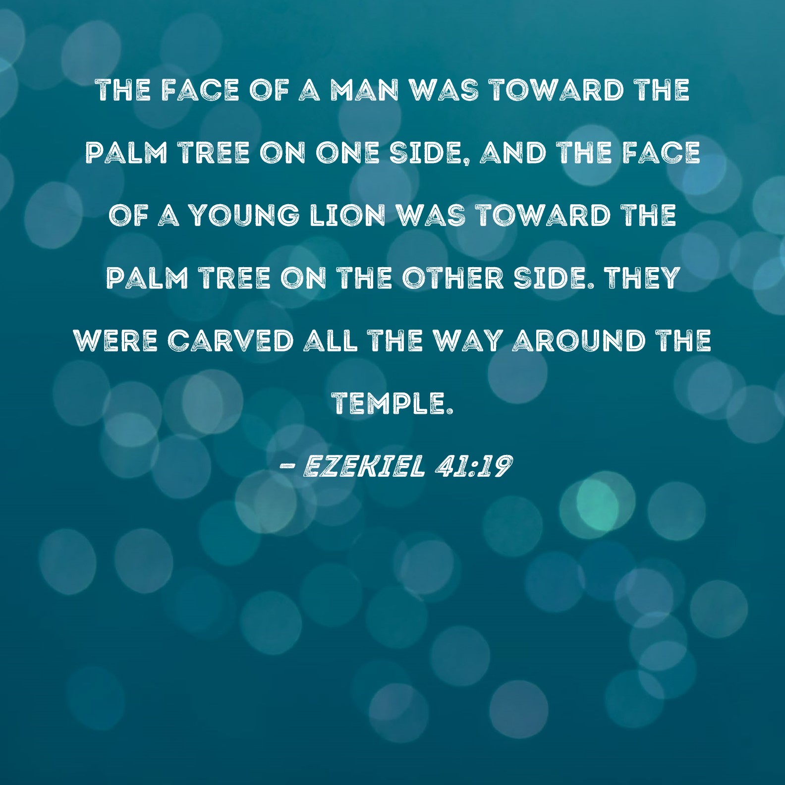 Ezekiel 41:19 the face of a man was toward the palm tree on one side, and the face of a young lion was toward the palm tree on the other side. They were carved all the way around the temple.