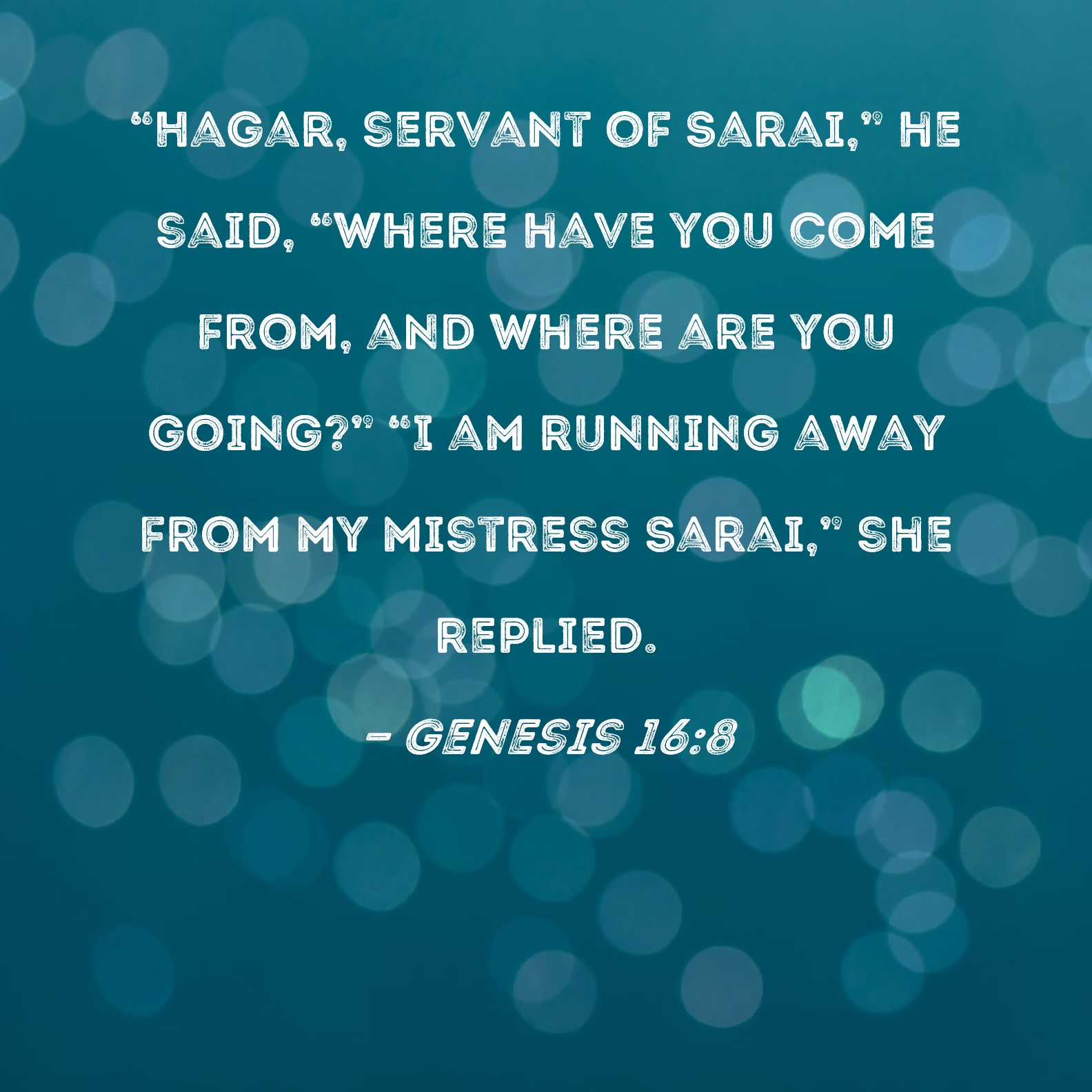 Genesis 16:8 "Hagar, servant of Sarai," he said, "where have you come from, and where are you going?" "I am running away from my mistress Sarai," she replied.