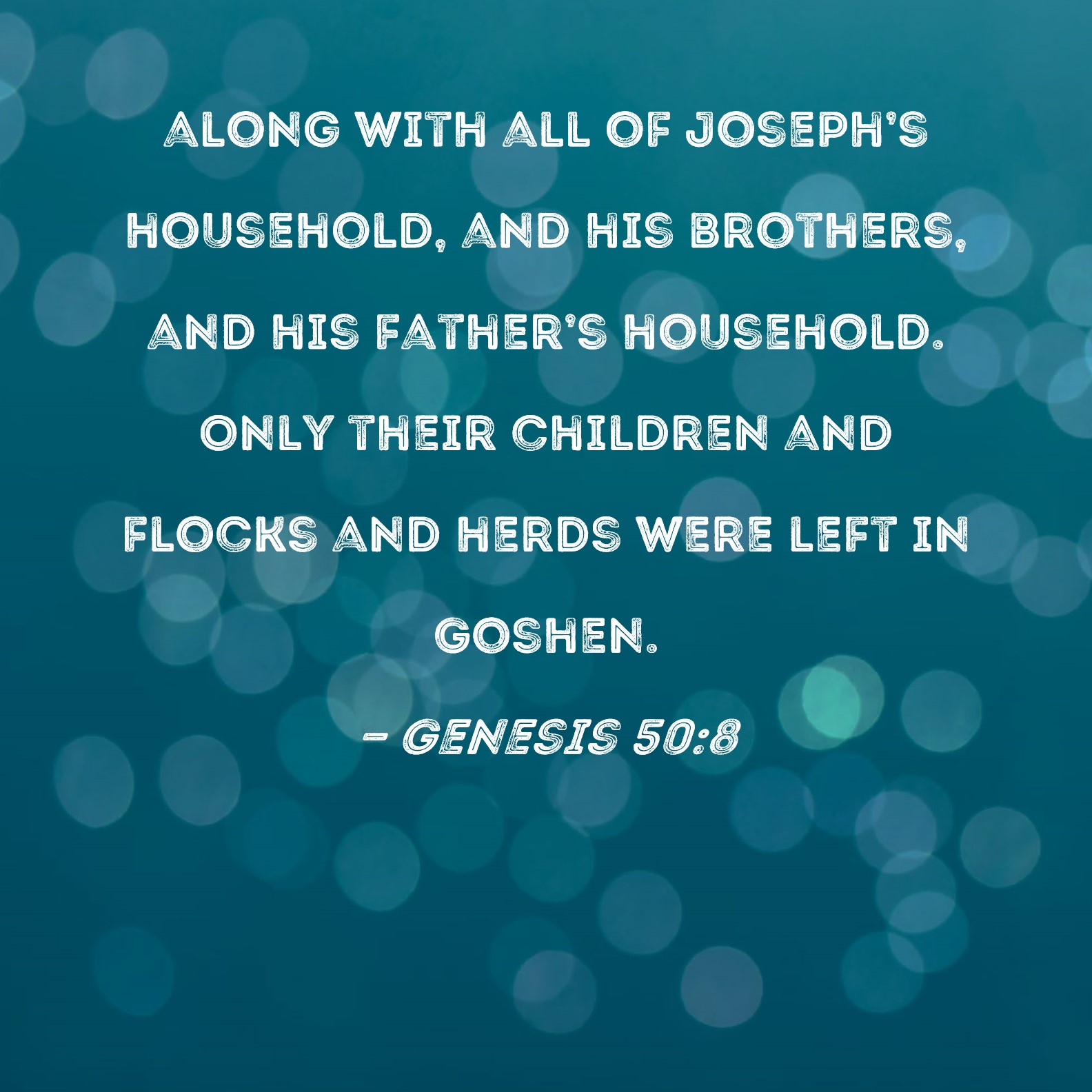 Genesis 50:8 along with all of Joseph's household, and his brothers, and his father's household. Only their children and flocks and herds were left in Goshen.