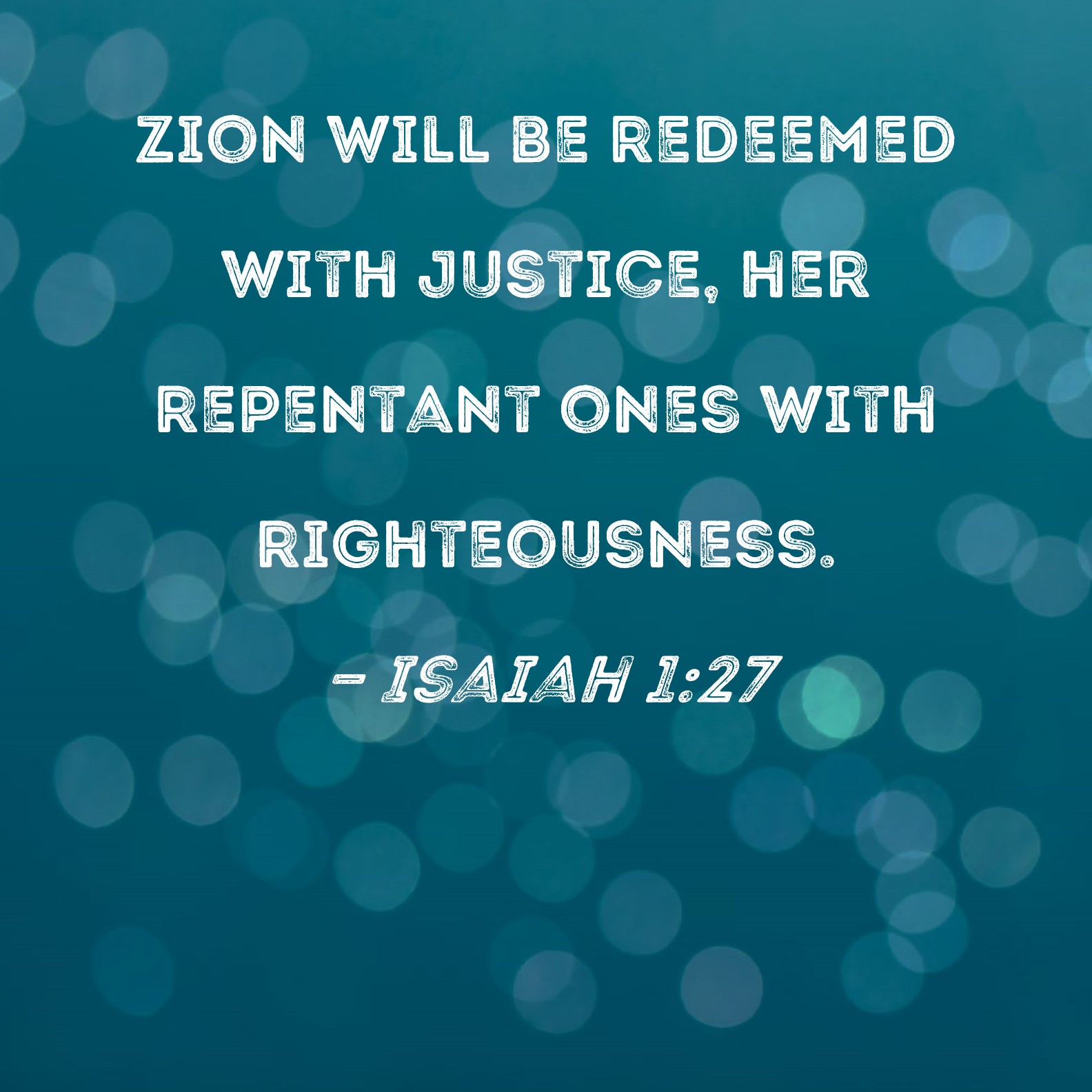 Isaiah 1:27 Zion will be redeemed with justice, her repentant ones with righteousness.