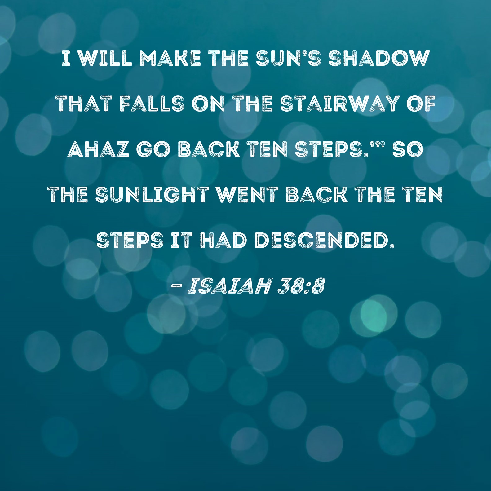 Isaiah 38:8 I will make the sun's shadow that falls on the stairway of Ahaz go back ten steps.'" So the sunlight went back the ten steps it had descended.