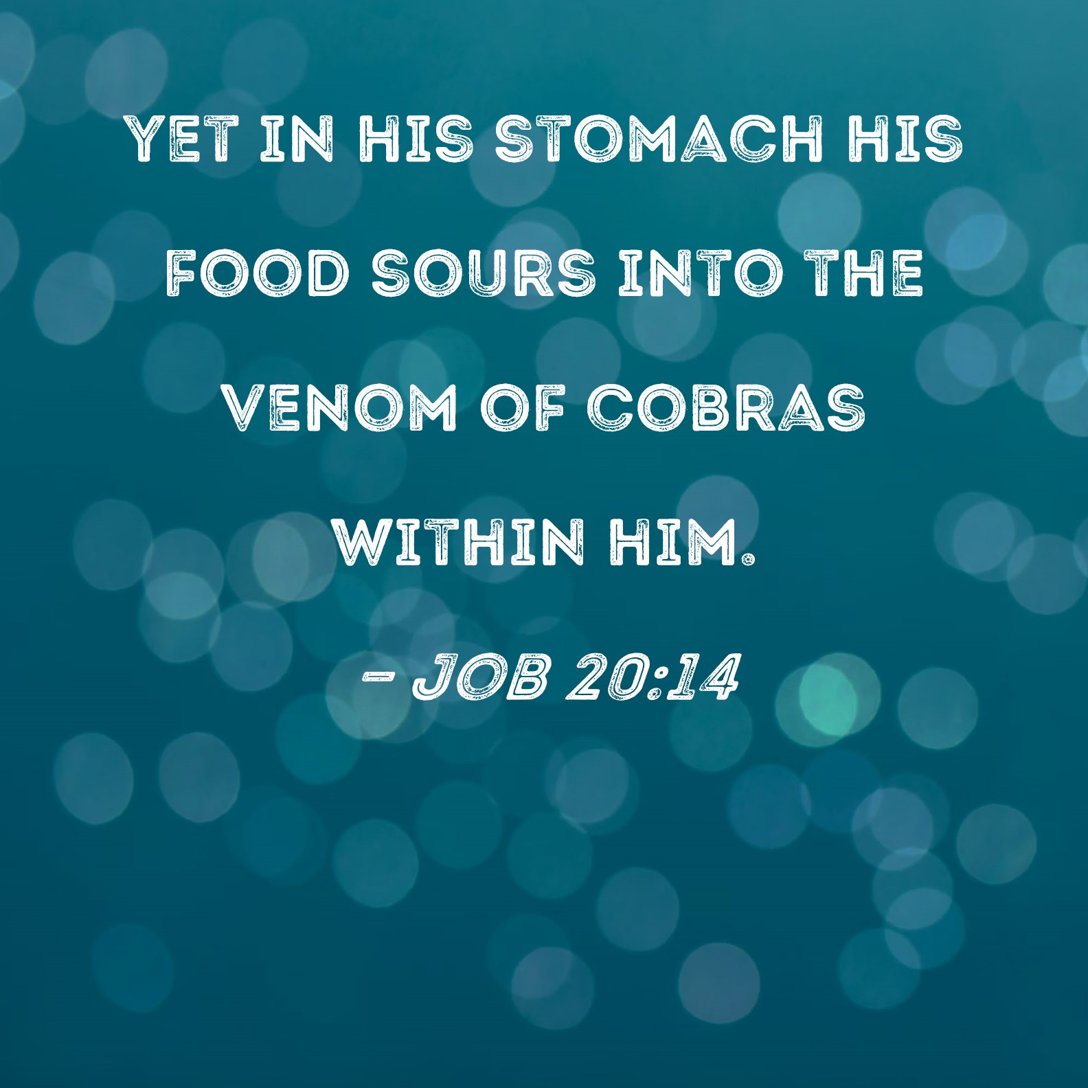 Job 20:14 yet in his stomach his food sours into the venom of cobras within him.