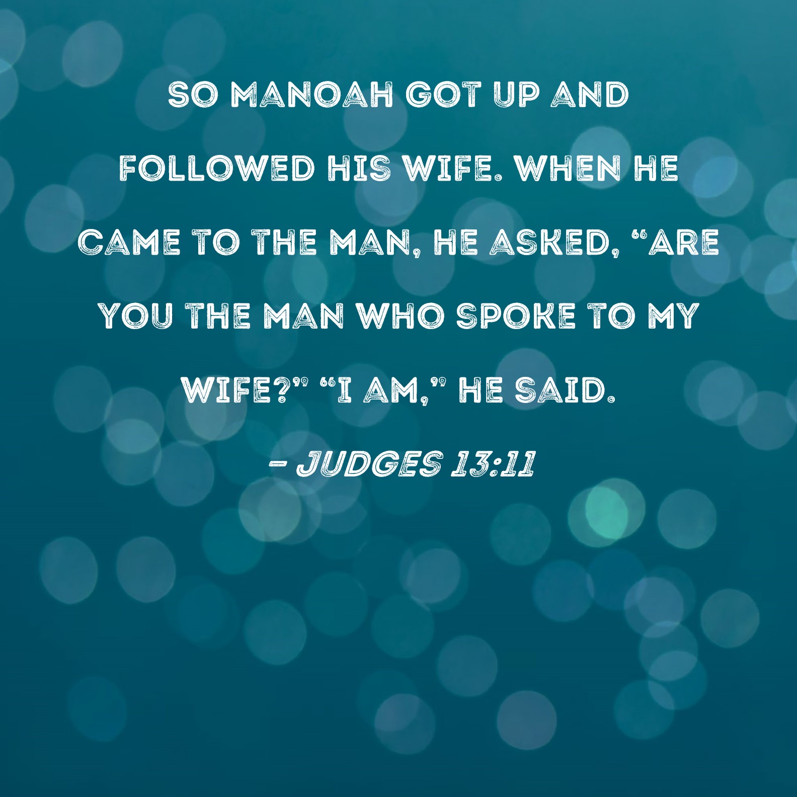 Judges 13:11 So Manoah got up and followed his wife. When he came to the man, he asked, "Are you the man who spoke to my wife?" "I am," he said.