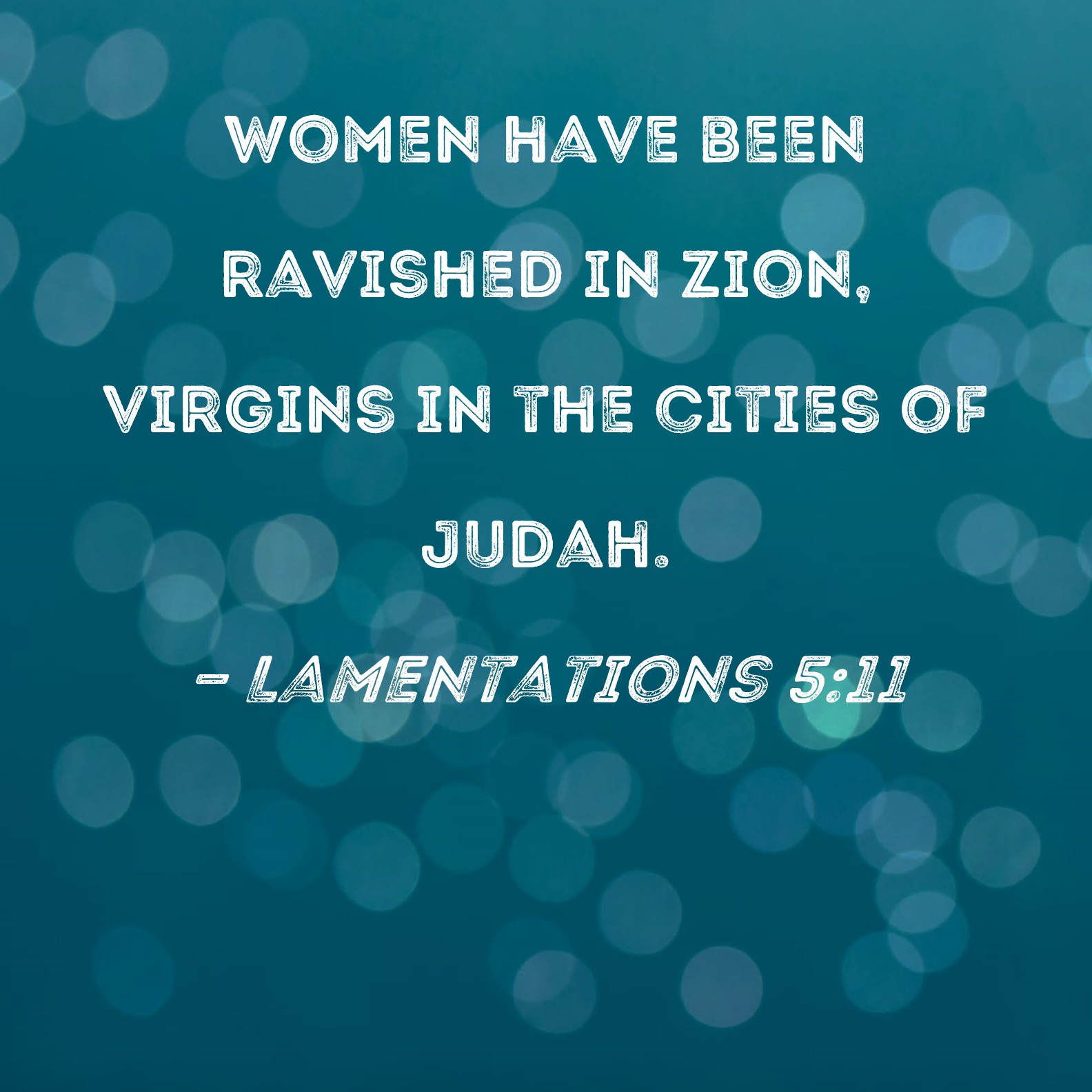 Lamentations 5:11 Women have been ravished in Zion, virgins in the cities of Judah.