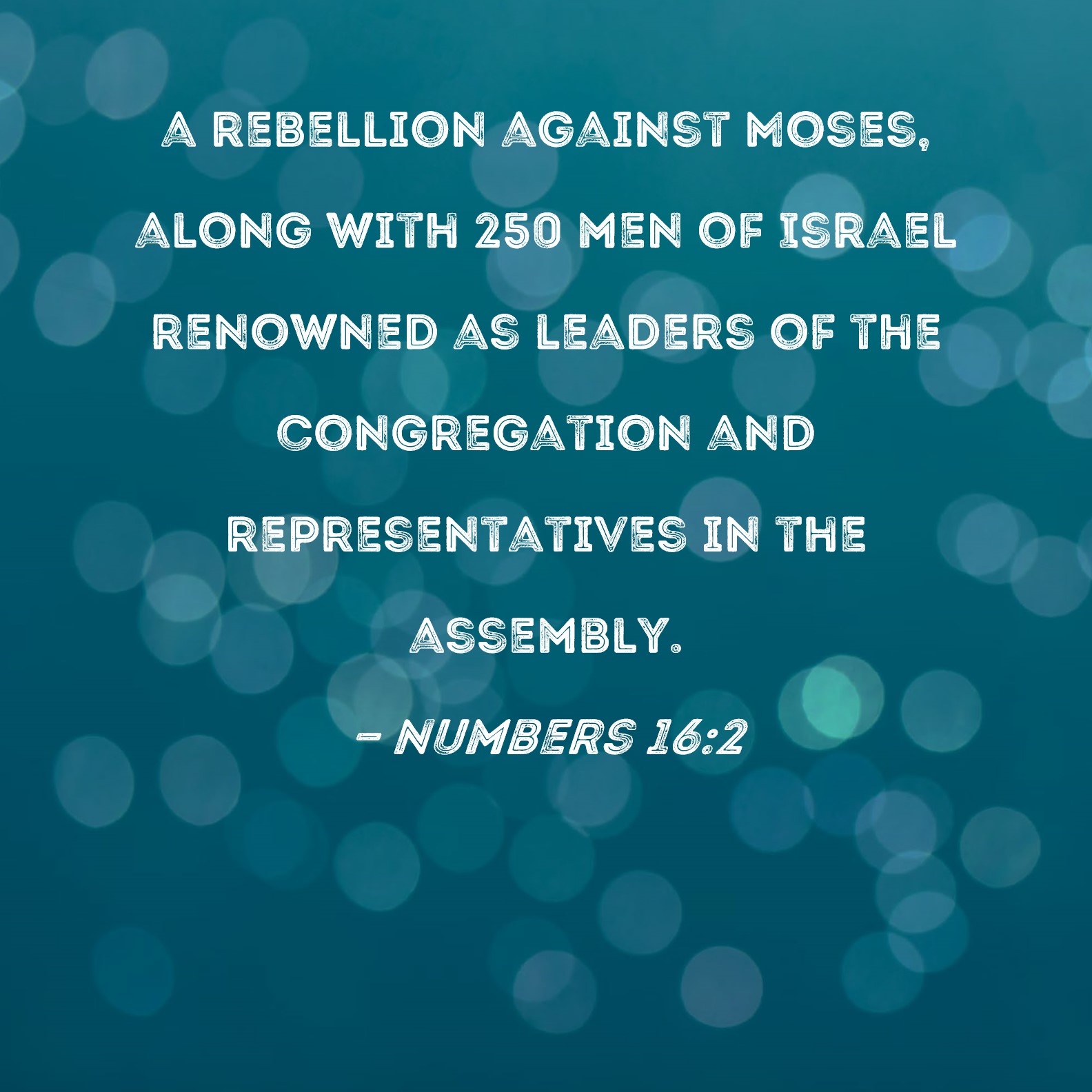 Numbers 16:2 a rebellion against Moses, along with 250 men of Israel renowned as leaders of the congregation and representatives in the assembly.