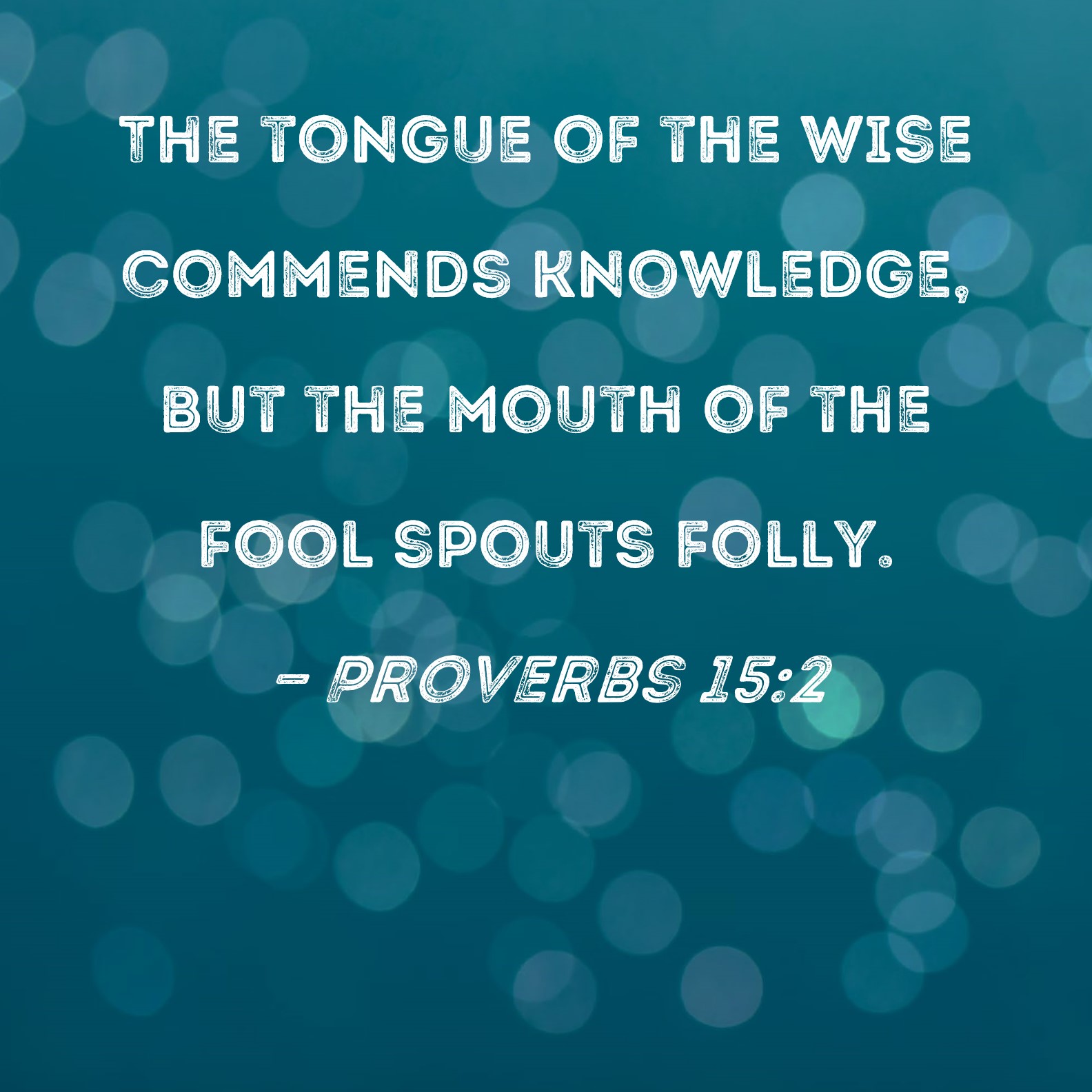 Proverbs 15:2 The tongue of the wise commends knowledge, but the mouth of the fool spouts folly.