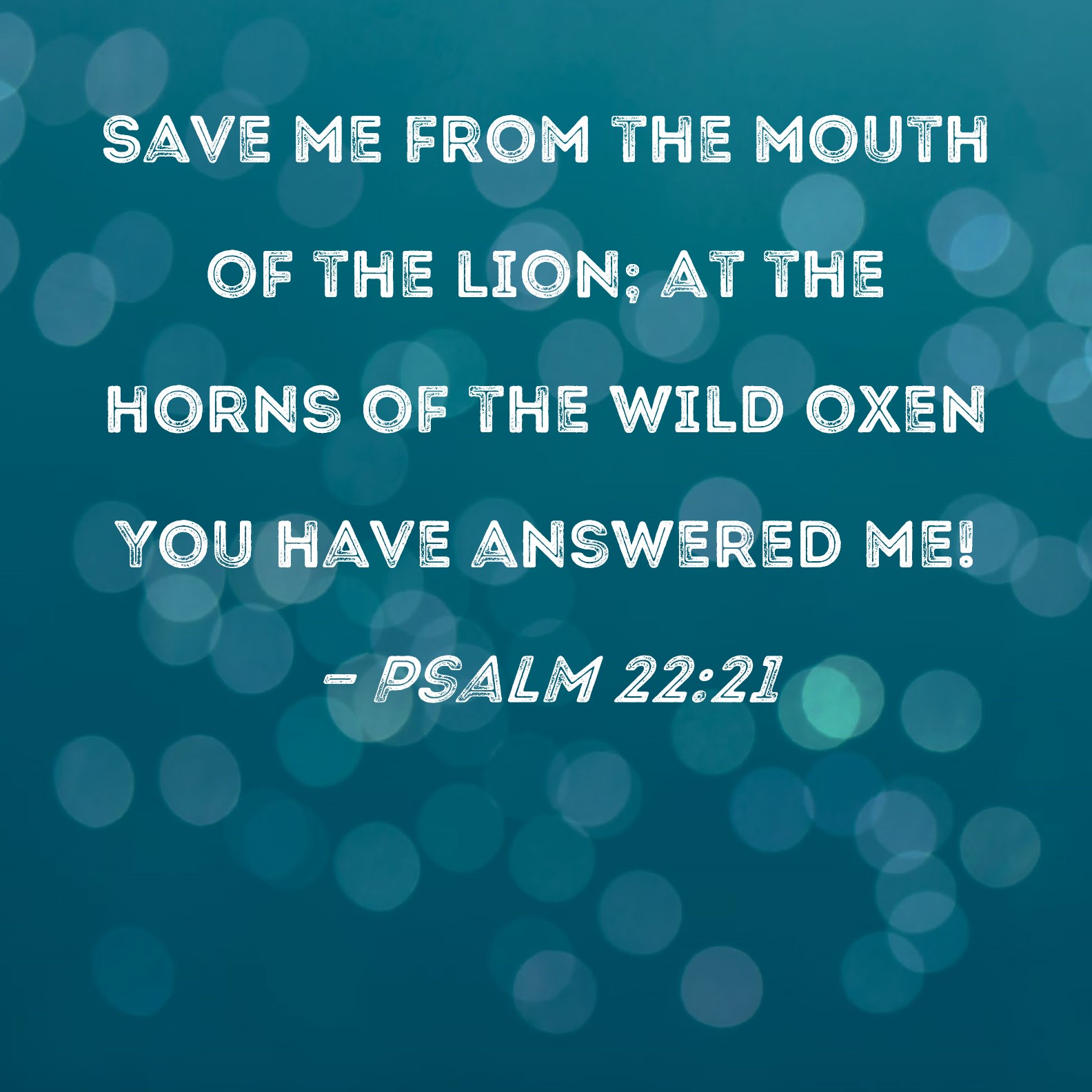Psalm 22:21 Save me from the mouth of the lion; at the horns of the wild oxen You have answered me!
