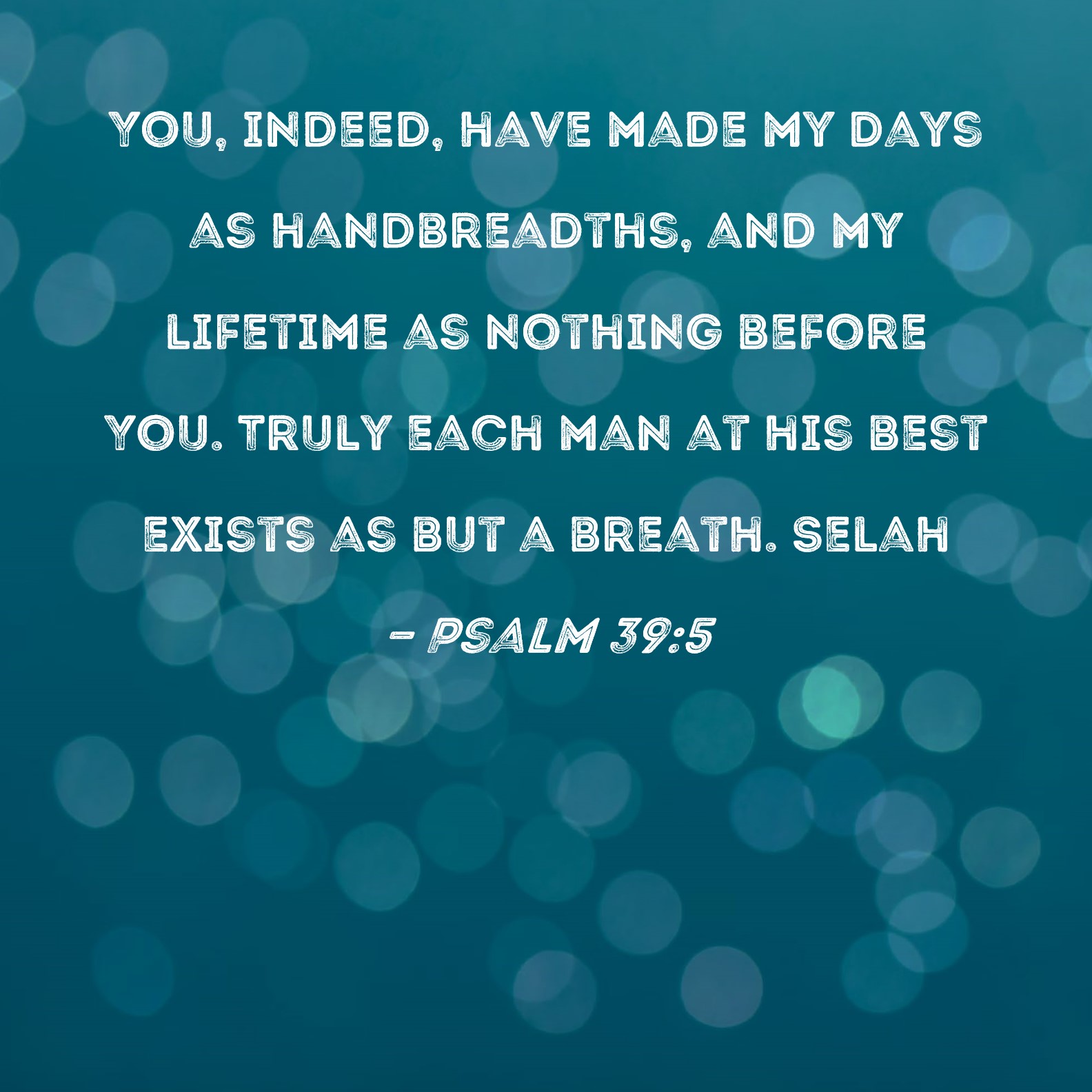 Psalm 39:5 You, indeed, have made my days as handbreadths, and my lifetime as nothing before You. Truly each man at his best exists as but a breath. Selah