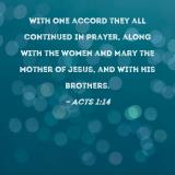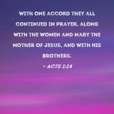 With one accord they all continued in prayer, along with the women and Mary the mother of Jesus, and with His brothers.