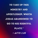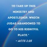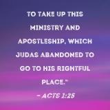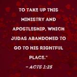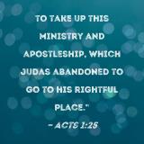 to take up this ministry and apostleship, which Judas abandoned to go to his rightful place."