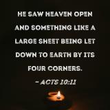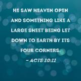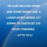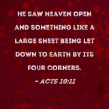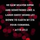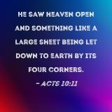 He saw heaven open and something like a large sheet being let down to earth by its four corners.