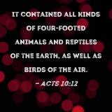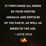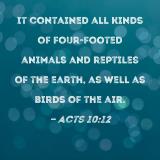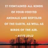 It contained all kinds of four-footed animals and reptiles of the earth, as well as birds of the air.