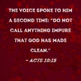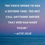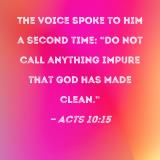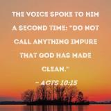 The voice spoke to him a second time: "Do not call anything impure that God has made clean."