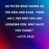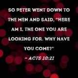 So Peter went down to the men and said, "Here am I, the one you are looking for. Why have you come?"