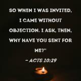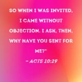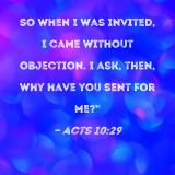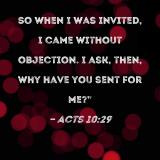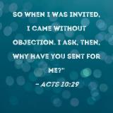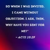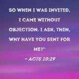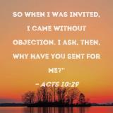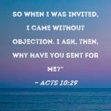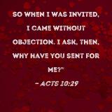 So when I was invited, I came without objection. I ask, then, why have you sent for me?"