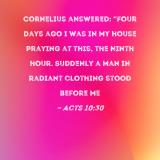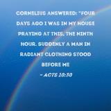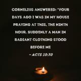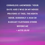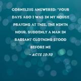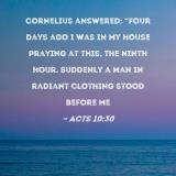 Cornelius answered: "Four days ago I was in my house praying at this, the ninth hour. Suddenly a man in radiant clothing stood before me