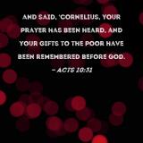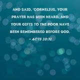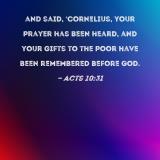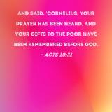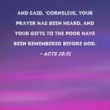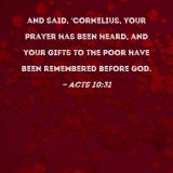 and said, 'Cornelius, your prayer has been heard, and your gifts to the poor have been remembered before God.