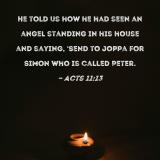 He told us how he had seen an angel standing in his house and saying, 'Send to Joppa for Simon who is called Peter.