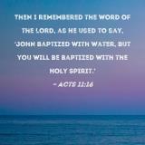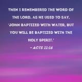 Then I remembered the word of the Lord, as He used to say, 'John baptized with water, but you will be baptized with the Holy Spirit.'