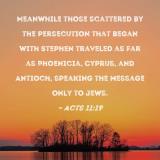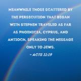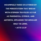 Meanwhile those scattered by the persecution that began with Stephen traveled as far as Phoenicia, Cyprus, and Antioch, speaking the message only to Jews.