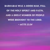 Barnabas was a good man, full of the Holy Spirit and faith, and a great number of people were brought to the Lord.