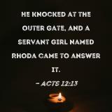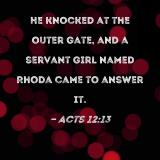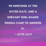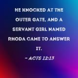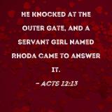 He knocked at the outer gate, and a servant girl named Rhoda came to answer it.