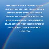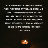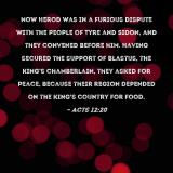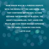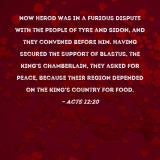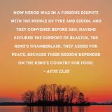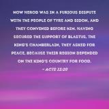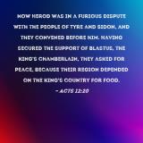 Pictures and Artwork Now Herod was in a furious dispute with the people of Tyre and Sidon, and they convened before him. Having secured the support of Blastus, the king's chamberlain, they asked for peace, because their region depended on the king's country for food. |