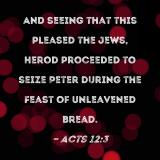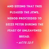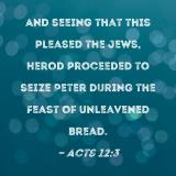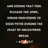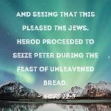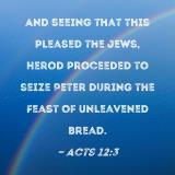 And seeing that this pleased the Jews, Herod proceeded to seize Peter during the Feast of Unleavened Bread.