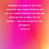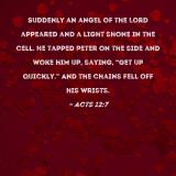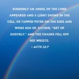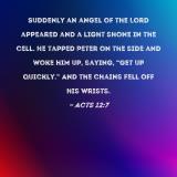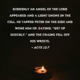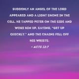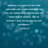 Suddenly an angel of the Lord appeared and a light shone in the cell. He tapped Peter on the side and woke him up, saying, "Get up quickly." And the chains fell off his wrists.