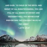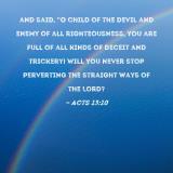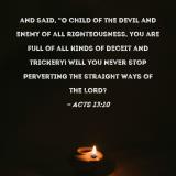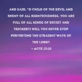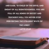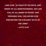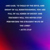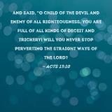 and said, "O child of the devil and enemy of all righteousness, you are full of all kinds of deceit and trickery! Will you never stop perverting the straight ways of the Lord?