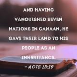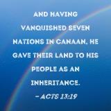 And having vanquished seven nations in Canaan, He gave their land to His people as an inheritance.