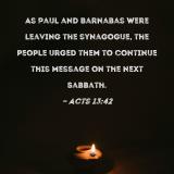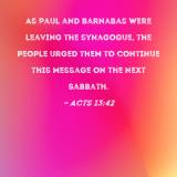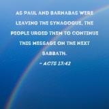 As Paul and Barnabas were leaving the synagogue, the people urged them to continue this message on the next Sabbath.