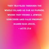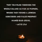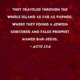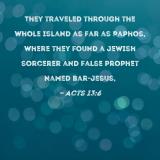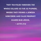 They traveled through the whole island as far as Paphos, where they found a Jewish sorcerer and false prophet named Bar-Jesus,