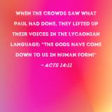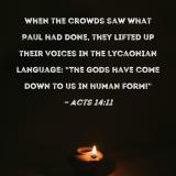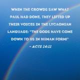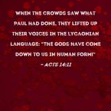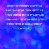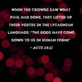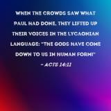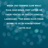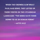 When the crowds saw what Paul had done, they lifted up their voices in the Lycaonian language: "The gods have come down to us in human form!"