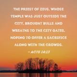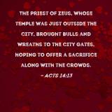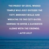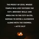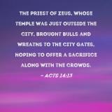 The priest of Zeus, whose temple was just outside the city, brought bulls and wreaths to the city gates, hoping to offer a sacrifice along with the crowds.