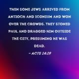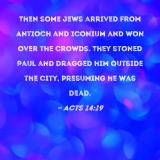 Then some Jews arrived from Antioch and Iconium and won over the crowds. They stoned Paul and dragged him outside the city, presuming he was dead.