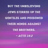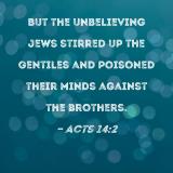 But the unbelieving Jews stirred up the Gentiles and poisoned their minds against the brothers.
