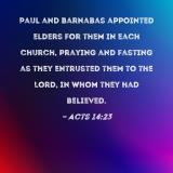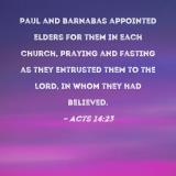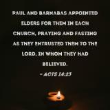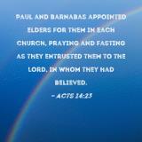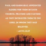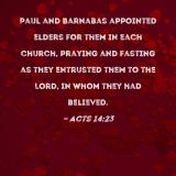 Paul and Barnabas appointed elders for them in each church, praying and fasting as they entrusted them to the Lord, in whom they had believed.