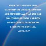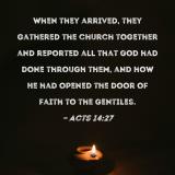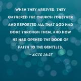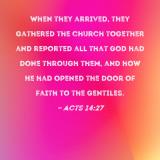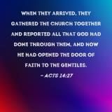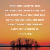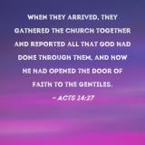 When they arrived, they gathered the church together and reported all that God had done through them, and how He had opened the door of faith to the Gentiles.