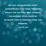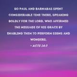 So Paul and Barnabas spent considerable time there, speaking boldly for the Lord, who affirmed the message of His grace by enabling them to perform signs and wonders.