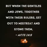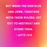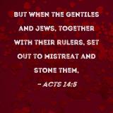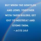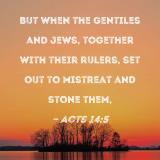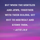 But when the Gentiles and Jews, together with their rulers, set out to mistreat and stone them,