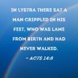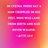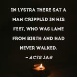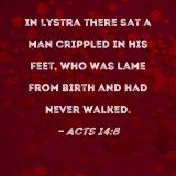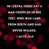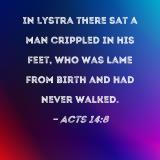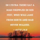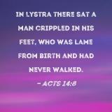 In Lystra there sat a man crippled in his feet, who was lame from birth and had never walked.