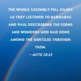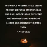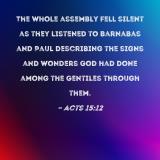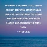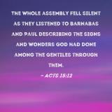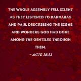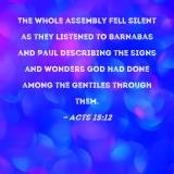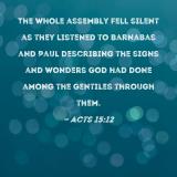 The whole assembly fell silent as they listened to Barnabas and Paul describing the signs and wonders God had done among the Gentiles through them.