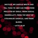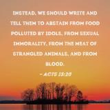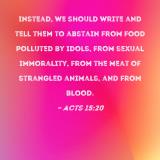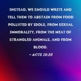 Instead, we should write and tell them to abstain from food polluted by idols, from sexual immorality, from the meat of strangled animals, and from blood.