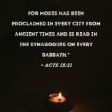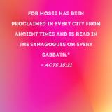 For Moses has been proclaimed in every city from ancient times and is read in the synagogues on every Sabbath."