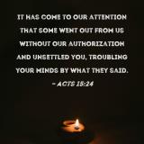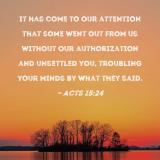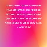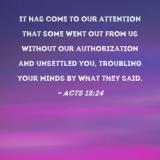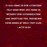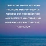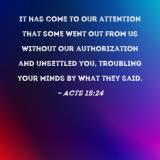It has come to our attention that some went out from us without our authorization and unsettled you, troubling your minds by what they said.