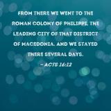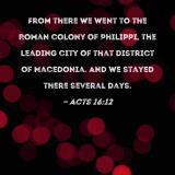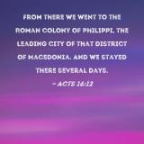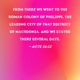 From there we went to the Roman colony of Philippi, the leading city of that district of Macedonia. And we stayed there several days.