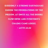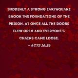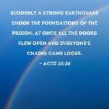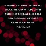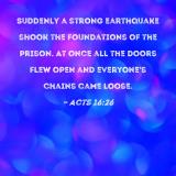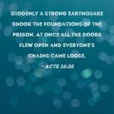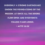 Suddenly a strong earthquake shook the foundations of the prison. At once all the doors flew open and everyone's chains came loose.